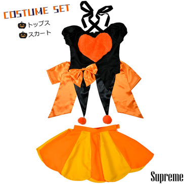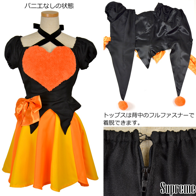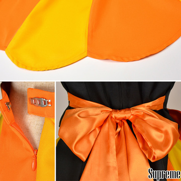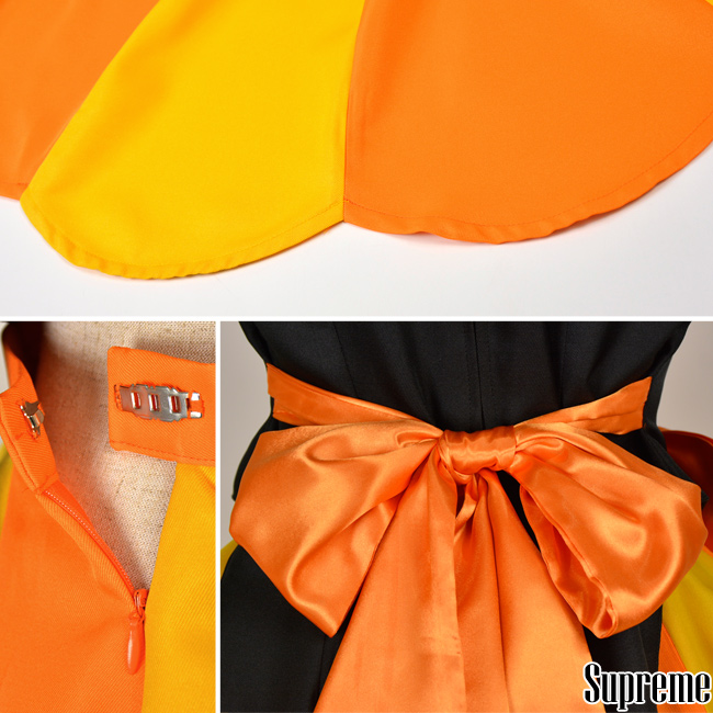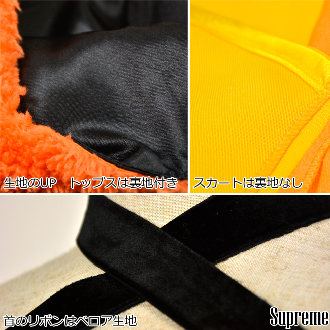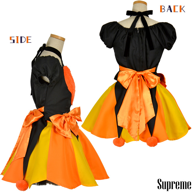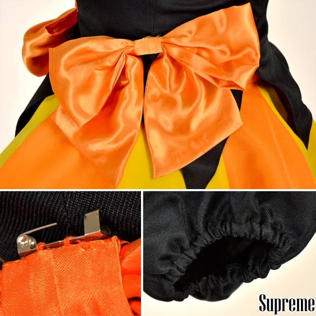 スカートは2色のオレンジでまるでまあるいカボチャみたい。 裾をスカラップのように丸くしました。