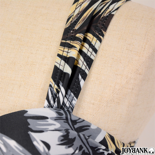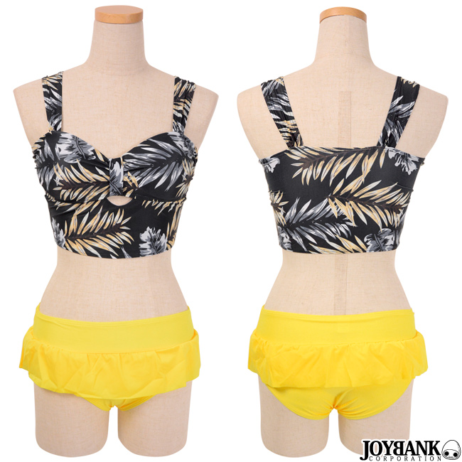 ボタニカルプリントとイエローのコントラストがまぶしいタンキニ水着です。