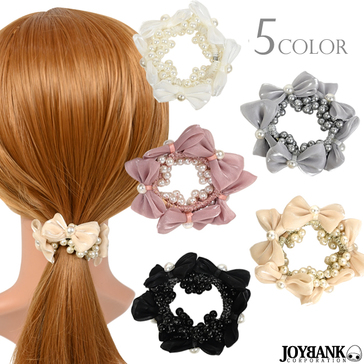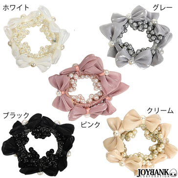 【全品90%オフ】ヘアゴム パール リボン たっぷり シュシュ 可愛い ヘアアクセサリー 5color ゆうパケット4点まで[M便 1/4]