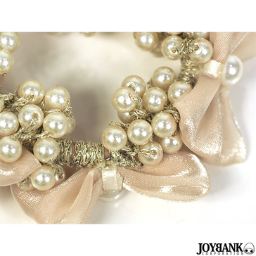 キラキラシャイニーなリボンとパールの組み合わせはフェミニンなスタイルや、お子様の大人っぽいおめかしにも◎